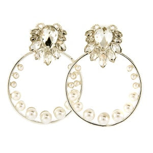 Pearl Accent Gem Hoop Earrings