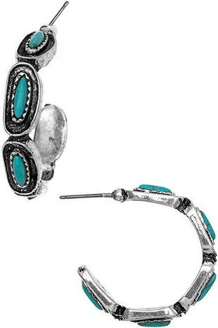 Western Concho Textured Gemstone Hoop Earring