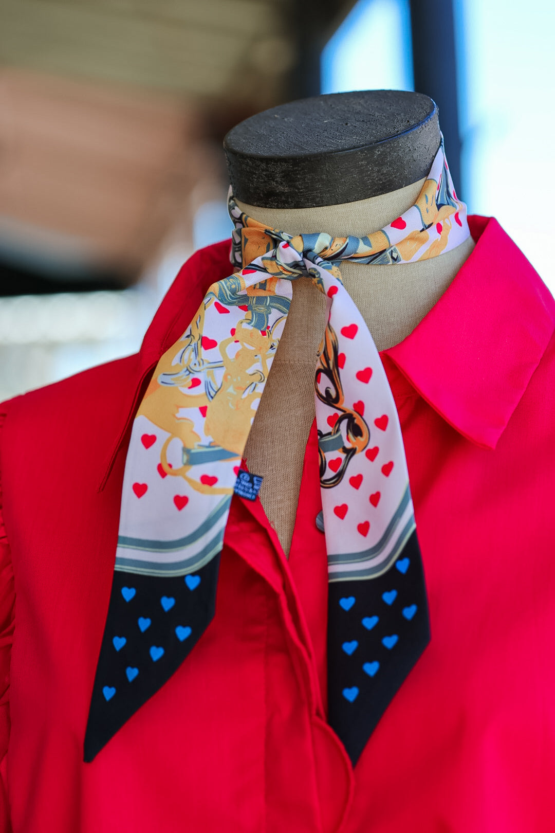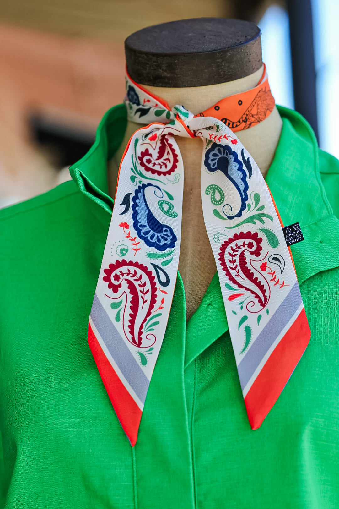 Burnt Orange Silk Twilly Scarf with Silver and Turquoise