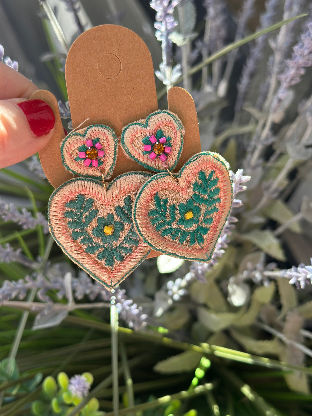 Embroidered Heart Earrings