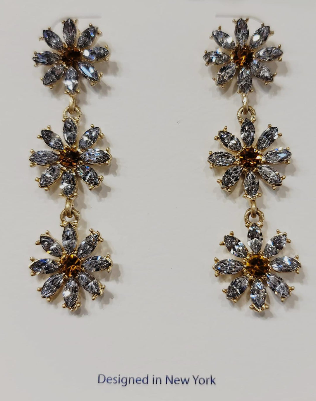 Layered Rhinestone Flower Dangle Earrings
