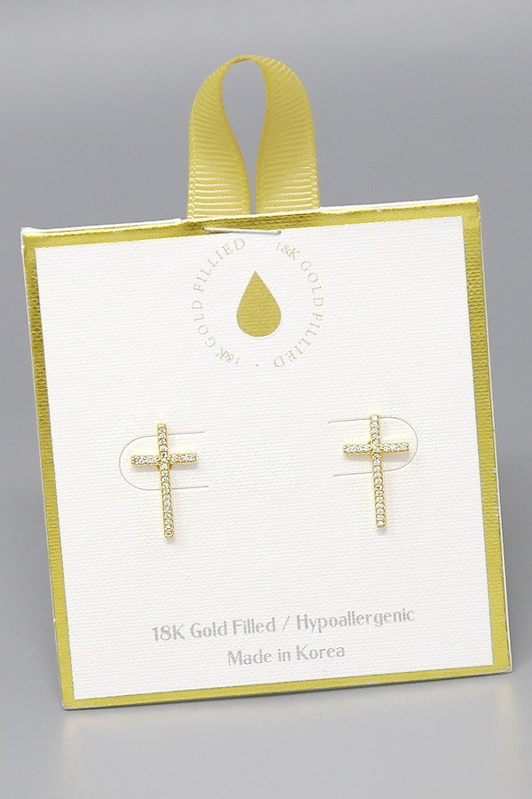 Cz Pave Cross 18k Gold Filled Stud Earrings