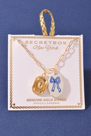 Gold Dipped Blue Heart Ceramic Necklace