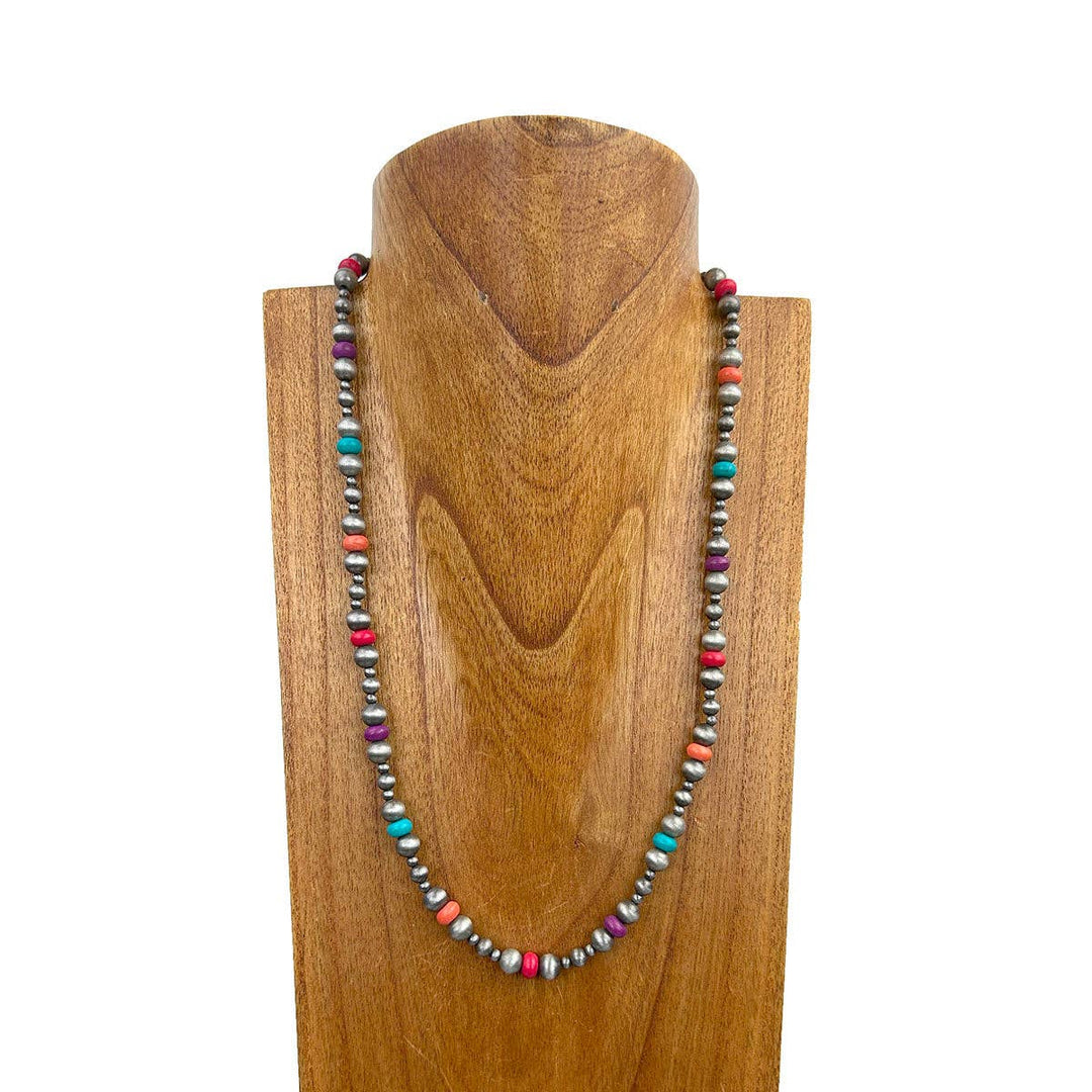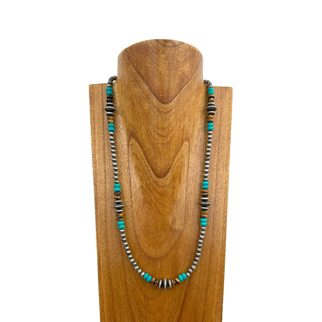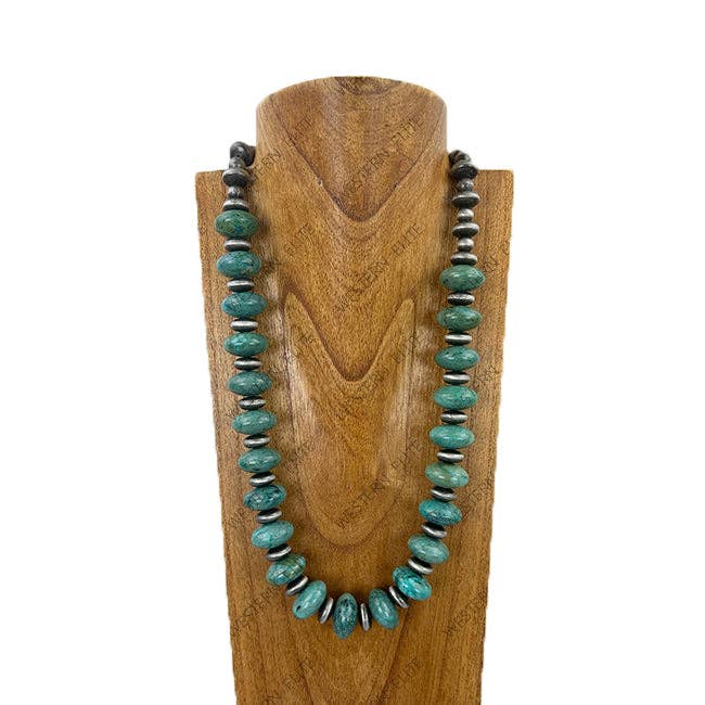 27'' Silver roundel Navajo pearl with green turquoise stone beads Necklace