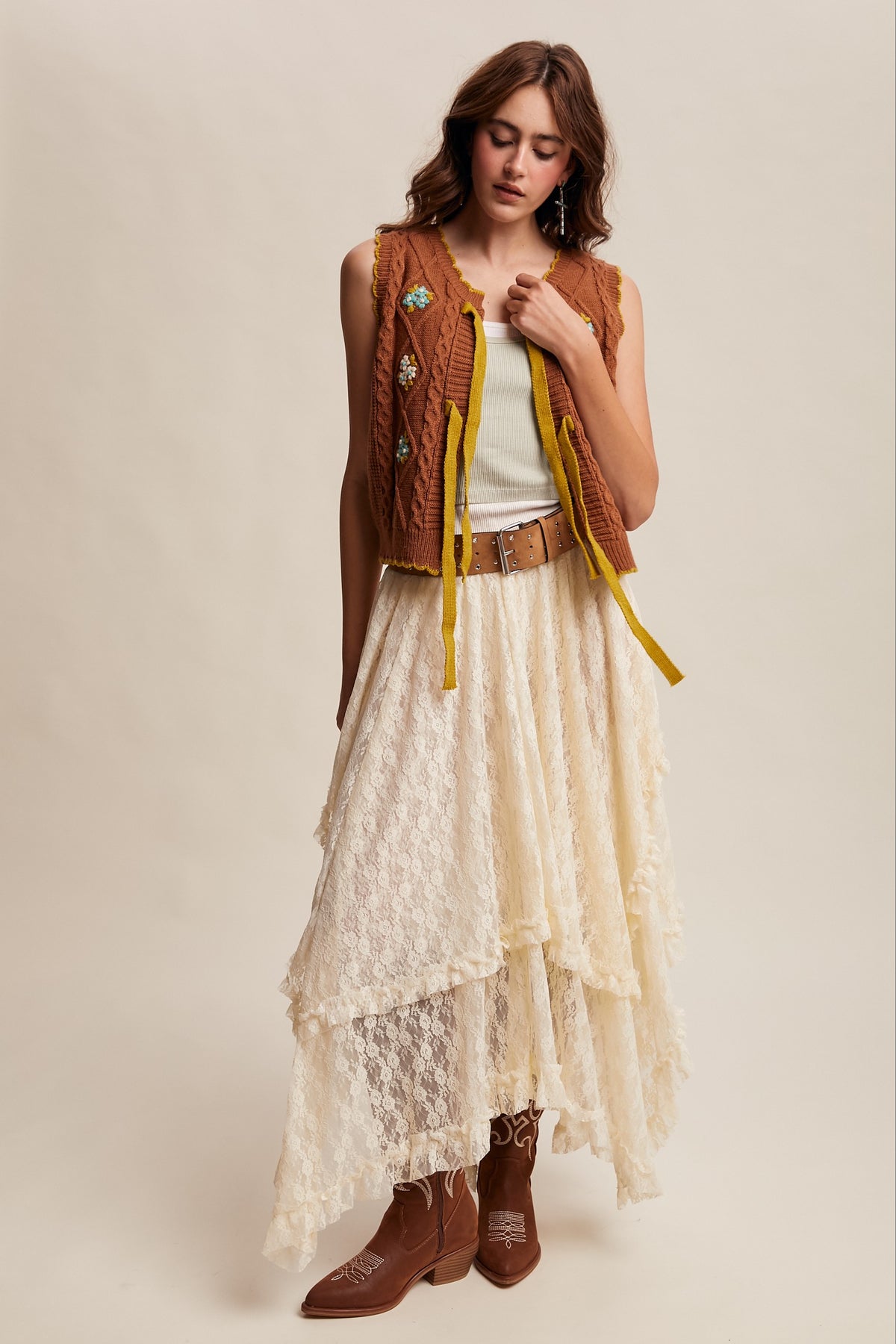 - Charming Closure: Double bow tie front in mustard contrast yarn
