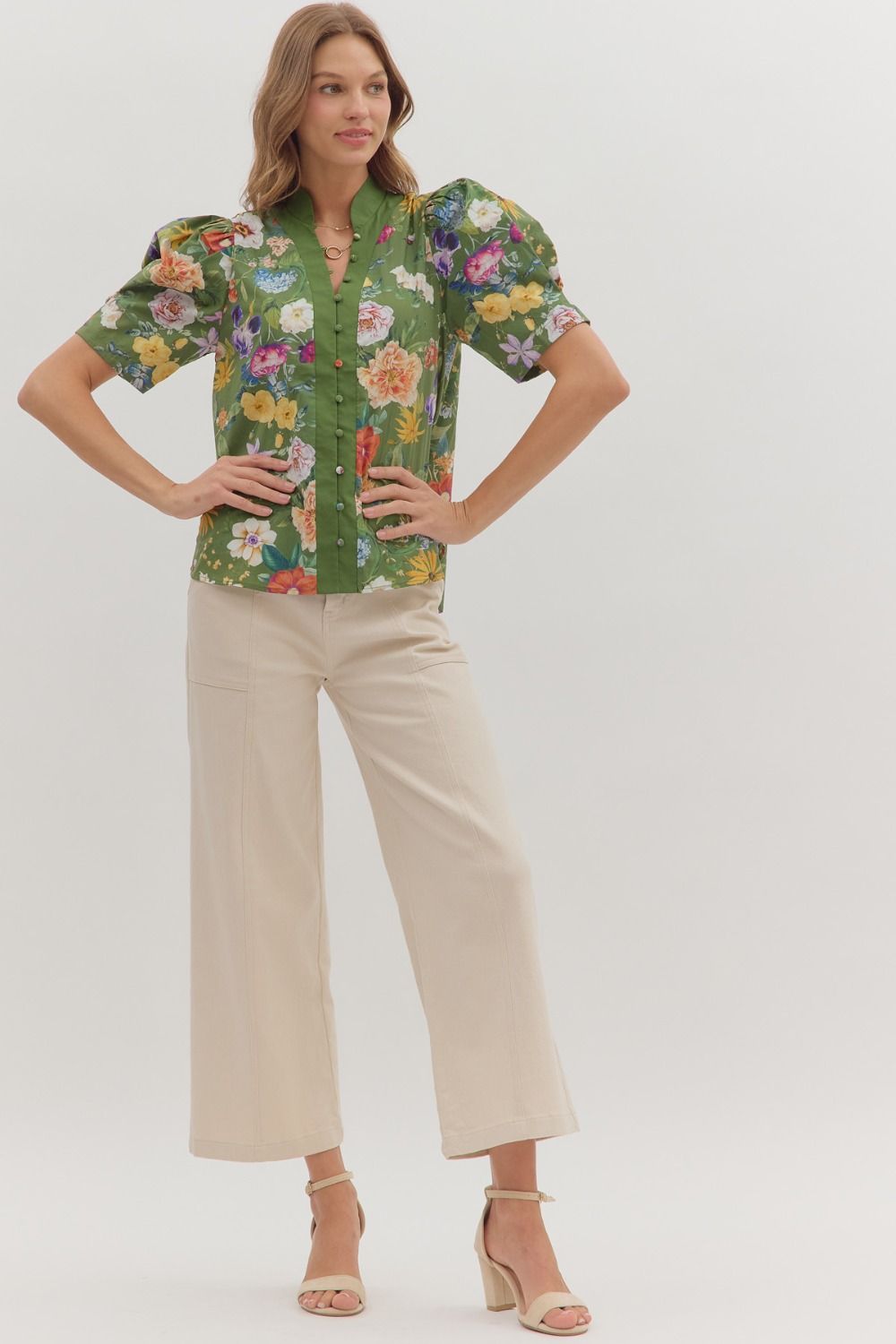 Jewel Button Ruffle Top