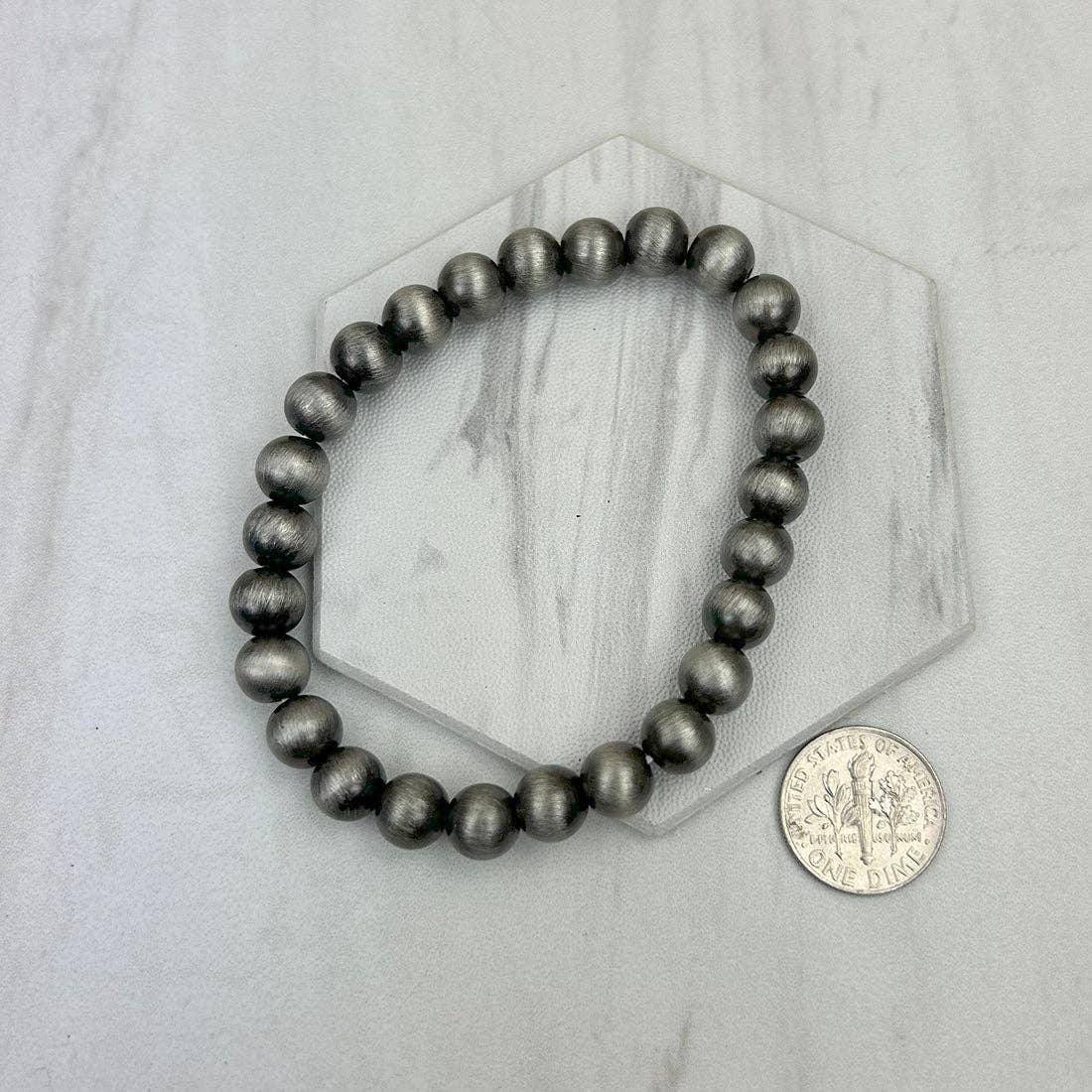 Introducing the BR250120-14, an 8mm stretch silver Navajo pearl beads bracelet from Western Elite Jewelry. This piece combines tradition with elegance, reflecting our decade-long expertise in crafting high-quality western and fashion jewelry. The stretchable design ensures a comfortable fit, while the silver Navajo pearl beads add a touch of sophistication. It's more than just a bracelet, it's a reflection of style and quality. Ideal for daily wear or special occasions. Enjoy this beautiful piece at a competitive price.