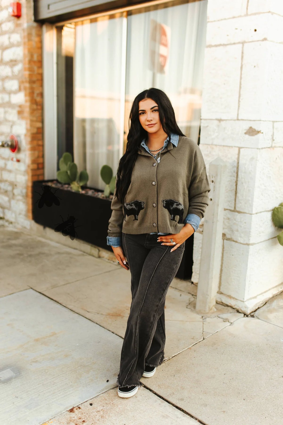 angus gals, this one is for youuu! taupe cardigan with some angus patches... we are in LOVEEE. style with some denim, leopard, blush... like really the options are ENDLESS.